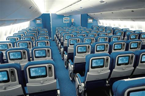 The cabin design of the KLM 777 300ER is elegant and spacious. The cabin is divided into three classes, namely, economy, business, and first class. Each class has its own unique design and features. The economy class has a 3-4-3 seating configuration, while the business and first class have a 2-2-2 seating configuration.